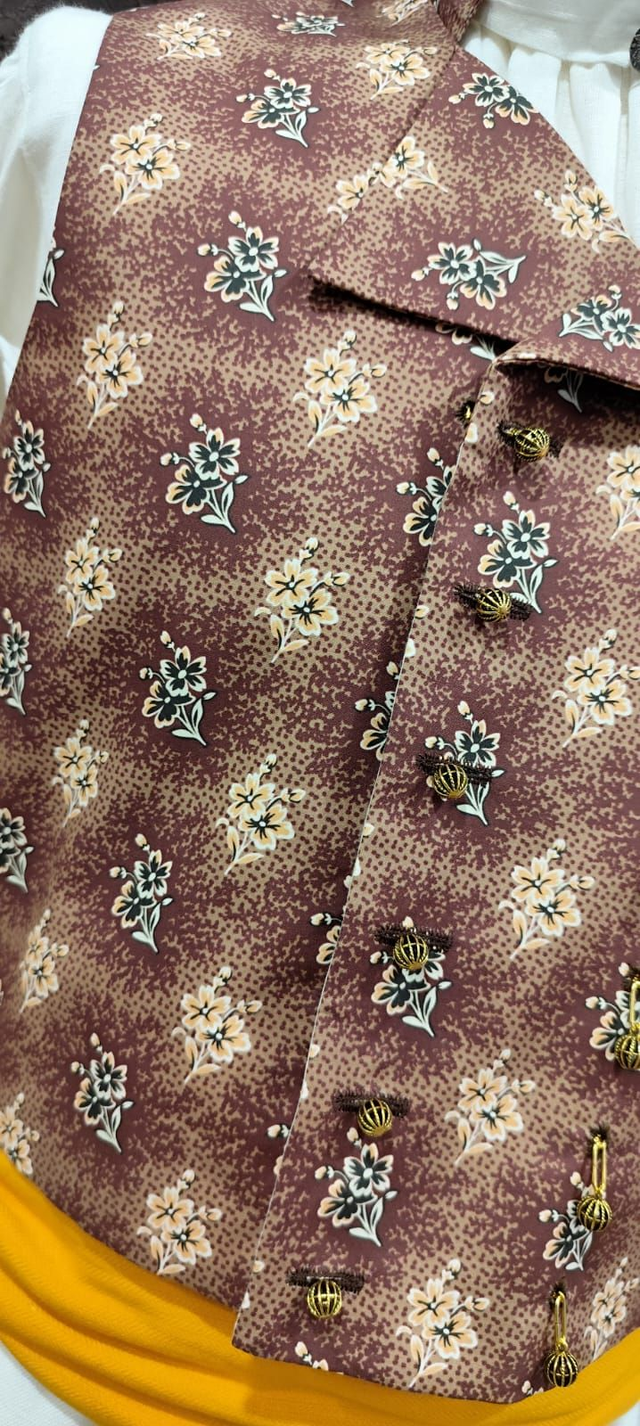 Chaleco confeccionado por tallas en indiana de algodón y forro de retorta.
