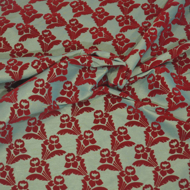 Terciopelo flocado, fondo raso brillo.