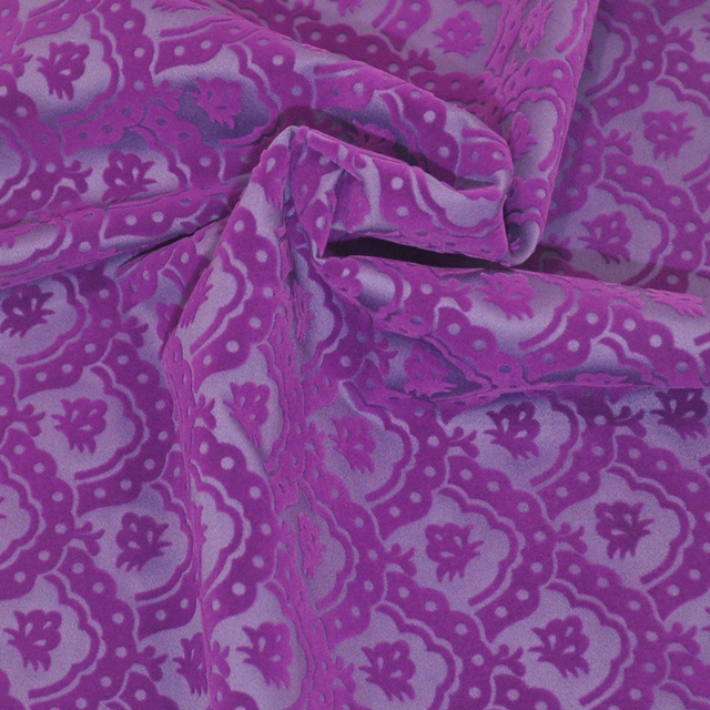 Terciopelo flocado, fondo raso brillo.
