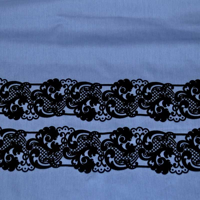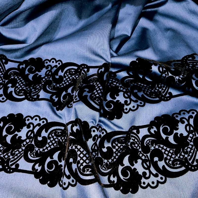 Corte de guardapiés de raso mate con adorno de cintas en terciopelo flocado. 4 caídas de 110x 100cm. (largo x ancho).